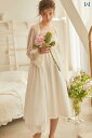 ネグリジェ 宮殿風 レディース 春夏 レースフリル シフォン ワンピース パジャマ パフスリーブ 透け感 七分袖 ミディ丈ドレス ナイト ルーム ホームウェア ゆるふわ 着心地 華奢 屋外着用可 シンプル ガーリー デート お泊り 女子会 マタニティ映え