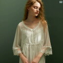 ネグリジェ 宮殿風 レディース 春秋 レースフリル シフォン ワンピース パジャマ ミディ丈ドレス 薄手 透け感 七分袖 ナイト ルーム ホームウェア