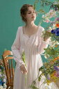 ネグリジェ パジャマ 宮殿風 レディース 長袖レースフリル シフォン ワンピース ガウン ドレス ローブ シンプル フレンチ刺繡 ガーリー ゆるかわ ルーム ナイト ホームウェア お家 デート お泊り マタニティ 入院 リラックス 女子会 イベント 美映え