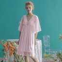 ネグリジェ 宮殿風 レディース 春夏 レーシーフリル シフォン ワンピース パジャマ 七分袖 透け感 ドレス ルーム ナイト ホームウェア
