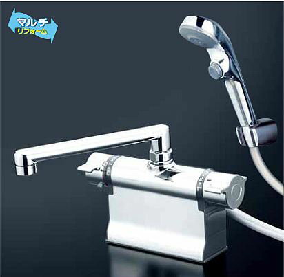 KVK 水栓金具【KF3011ZTR2S2】フルメッキワンストップシャワーヘッド付 デッキ形サーモスタット式シャワー 240mmパイプ付 寒冷地用〔HB〕