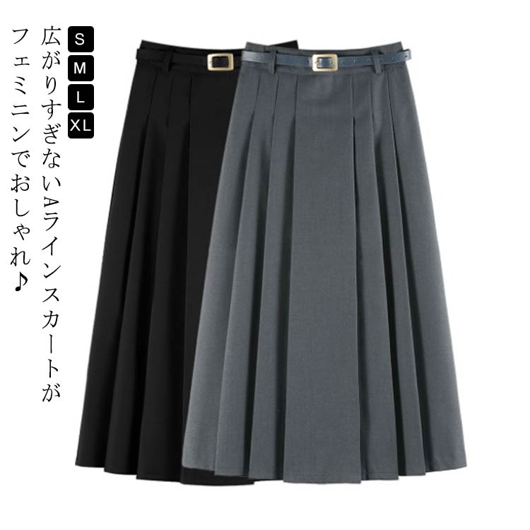 プリーツスカート レディース ロングスカート フレアスカート Aライン スカート ベルト付 制服スカート ハイウエスト 無地 ボトムス 体型カバー 着痩せ ゆったり おしゃれ 上品 大人 通勤 お出かけ オフィス 普段着 春 夏 秋 冬