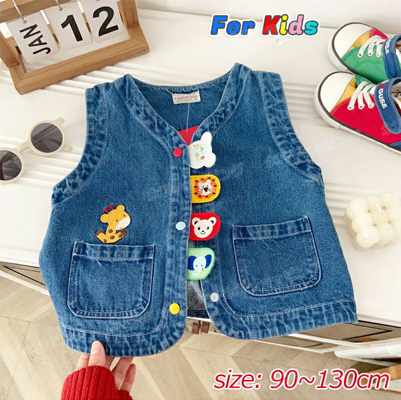 キッズ デニム ベスト 子供服 女の子 男の子 トップス Gベスト アウター Gジャン 刺繍 ジャケット 綿 通学 通園 ダンス衣装 普段着 ジャズ ヒップホップ 春 夏 秋 こども 子ども服 90-130cm ベビー服 韓国風子供服 デニムベスト フレアーベスト カジュアル 重ね着 春 秋 冬