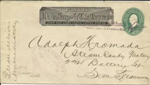 ウェルズ・ファーゴ・エクスプレス 2c-ワシントン州郵便封筒-サンフランシスコ&フレズノRTE.(紫