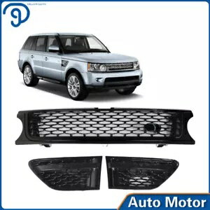 2010-2013 レンジローバースポーツフロントメッシュグリルエアサイドベントセットブラックに適合 Fit For 2010-2013 Range Rover Sport Front Mesh Grille Air Side Vents SET Black