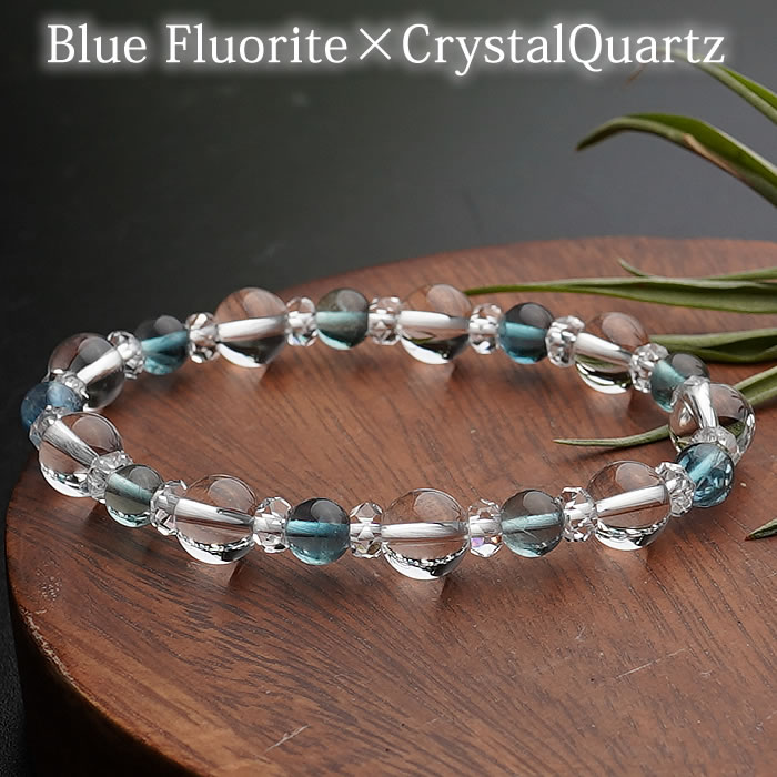 ブルーフローライトAAA6mm 水晶AAAAA8mm カット水晶 ブレスレット 天然石 パワーストーン