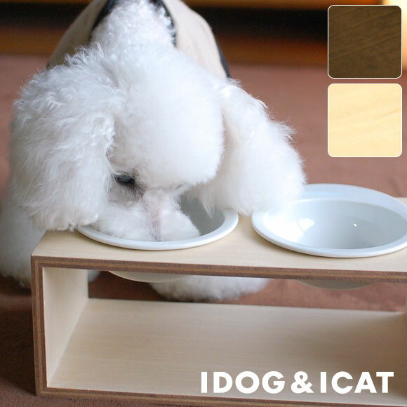 【犬 猫 食器台】【犬の食器台 フードボウルスタンド 食器スタンド テーブル 食器 木製】【国産 安全】【超小型犬 小型犬 犬用 猫用】【icat i dog】 こちらの商品は商品の性質・衛生上、返品できません。商品内容をよくご確認の上ご注文くださいませ。 家具工房WOOD CAM WOOD CAM(ウッドキャム)は、霊峰立山のふもとにある家具工房で、家具職人 東 功人氏の手により多くの製品が日々生み出されています。主な製品は、人間用家具・店舗漆器等、多種に及び、シナ合板とスチール使いに定評があります。 メーカー希望小売価格はメーカーサイトに基づいて掲載しています2018/10/10 12:39ペット用食器・給水器・給餌器 食器台・テーブル 部門 iDog Living Keatキートスクエア2 Lサイズ 2カラー 3方向より シナを何層にも重ねて圧着した合板使用 付属の滑り止めシールをお好みで貼ってください 専用フードボウルには小粒のフードが112gほど入ります 4.4kgコロスケくんはナチュラル使用 首がラクだよ 高い位置にあることで負担が軽減 3.0kg百花ちゃんはブラウン使用 背筋がまっすぐの状態で食べられます 猫ちゃんにもオススメ(4.0kg七花ちゃん) 器を高く設置することで食事中の首や腰の負担を軽減し、食事をより食べやすく、より楽しめるようサポート! 愛犬・愛猫のための、シンプルでオシャレな木製フードボウルスタンドです。長方形のボックス型の台の上部の板に、フードボウルを乗せるための丸い穴が2つ開いていて、フードとお水、もしくは2匹分のフードを並べて与えることができます。 地面より高い位置にフードボウルを据えることで、首や腰を大きく曲げずに食べることができます。それにより食事中の体の負担が軽減。シニアや病中・病後のパートナーに特にオススメ。また、スープの多い食事でも最後までしっかり食べることが出来るため、満足度もUP。 食べ終わった後はボウルをさっと取り外せて便利。そして食べこぼしが拭き取りやすいオープンシェイプ。食べやすさだけでなく、お手入れのしやすさにも考慮しました。 おすすめポイント 使用資材はホルムアルデヒドの含有が極めて低く、安全性の高いF☆☆☆☆基準をクリアし、ペットが誤って噛んでしまっても安心です。 日本の家具職人の技が活きる品質の高さ。KeatはiDogと家具工房WOOD CAM(東 功人氏)とのコラボレート製品です。 多少の水ははじくので、周りにフードや水がこぼれても安心です。 商品詳細 カラー ブラウン/ナチュラル 素材 シナ合板 両面仕上げ(ベニヤ) サイズ 約 横28.5x縦16x高さ11cm穴の直径11.5cm 重量 約550g 塗料 漆器用塗料安全な塗料で丁寧に仕上げております。 付属 滑り止めシート※底面の説明書に貼りつけて梱包してあります。開封前にご確認ください。 生産国 日本 ベニヤ使用 木目が美しく表面が滑らかなシナを何層にも圧着加工した特注の合板です。美しさに加え、強度も兼ね備えています。永く愛用していただける品です。 塗装ロットによって色味が異なることがございます。 素材の特性上、側面に穴が開く場合がございます。 上記は良品となりますのでご了承の上、お買い求め下さい。 滑り止めシートは付属品としてお送りしております。お客様ご自身で用途に合わせてご利用ください。 商品によって風合いや色合いが異なる場合がございます。 複数個をご購入の場合はお色味が合わない可能性がございますので、あらかじめご了承くださいませ。 お手入れ方法 水または中性洗剤を薄めたものをふきんなどに染込ませ、軽く拭いて下さい。 圧着部分は接着剤で強固に固定されておりますが、無理に強い力を加えないようにして下さい。 サイズ情報 サイズ 高さ(A) 奥行き(B) 幅(C) 穴直径(E) Sサイズ 8cm 16cm 28.5cm 11.5cm ● Lサイズ 11cm 16cm 28.5cm 11.5cm このページはLサイズの販売ページです。 同デザインのSサイズをお求めはコチラからお願いします。 Keatシリーズ/専用フードボウル一覧へ フードボウルは別売です。