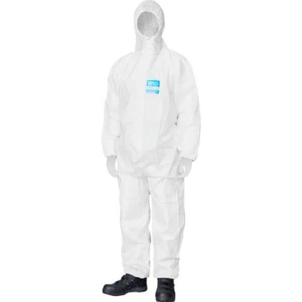 バリアーマン(R) フード付きカバーオール P6040 防護服 MMS素材を使用、(S)摩擦に強いスパンボンド不織布・(M)メルトブローの4層構造になっており、様々な化学薬品・アスベスト・ウイルス等に優れたバリア効果を発揮します。 色ホワイト 用途アスベスト取扱い作業、ガラス繊維取扱い作業、ペイントスプレー作業、ダイオキシン取扱い作業、機械メンテナンス作業、畜産農場作業 仕様フード・袖口・裾部分ゴム入 性能帯電防止加工 種別つなぎ 材質スパンボンド不織布、メルトブロー 規格JIS規格 胸囲(cm)75~105 機能微粒子防護、ミスト防護 JIS規格JIS T8115適合品/タイプ5:微粒子防護用密閉服、タイプ6:ミスト防護用密閉服 適応身長(cm)155~170EN規格放射性粉塵に対する防護 EN 1073-2 クラス1 5