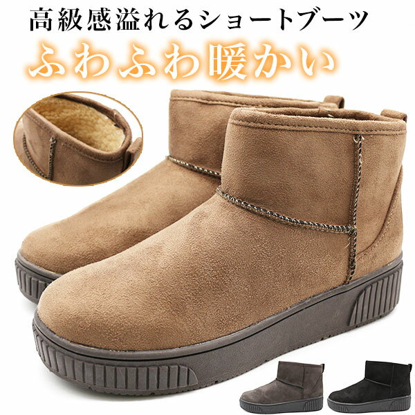 スノーブーツ ブーツ レディース 靴 スノー ショート 黒 ブラック 茶 ブラウン スウェード調 撥水 暖かい 秋 冬 雪 防寒 ふわふわ 滑りにくい サークル CIRCLE KSE-64008
