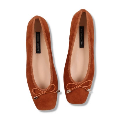 パラディクルール PARADIS COULEUR スクエアトウビジュー金具リボンバレエ (ブラウンスウェード)