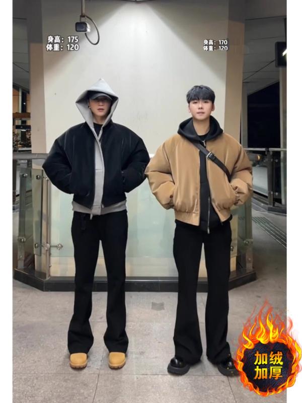 ブラック ウォッシュデニム 男性用 フレア ストリート メンズ 膝下 シルエット 水色 アメリカン ヘビーデューティ 秋冬 アウター