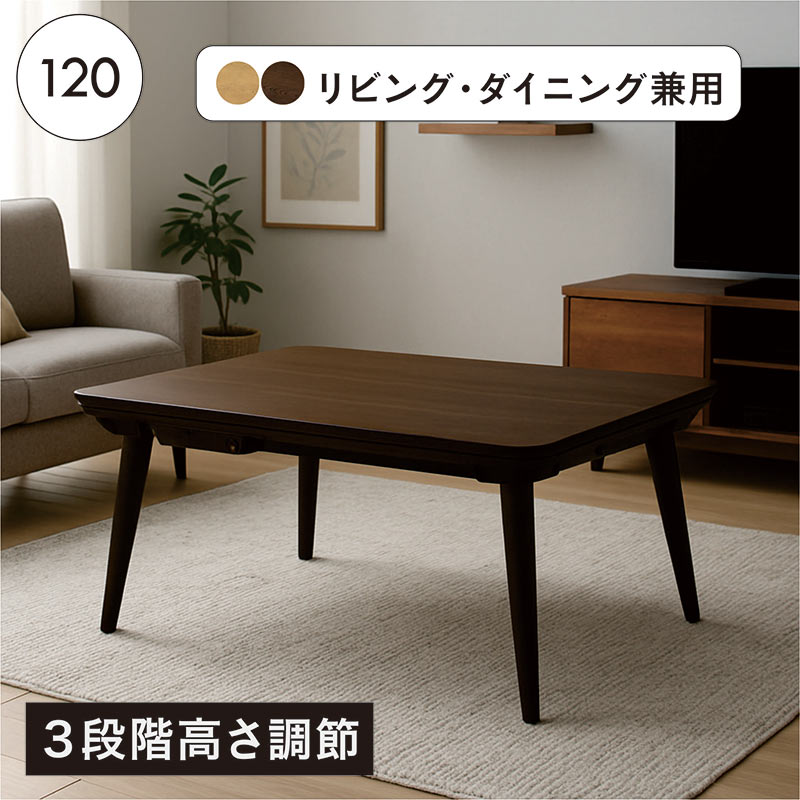 こたつ 高さが変えられる 3段階高さ調節 幅120cm 120×80 ダイニングこたつ ハイタイプ ロータイプ こたつ テーブル リビングダイニング兼用 ナチュラル ブラックウォッシュ 継ぎ足 脚 2way ローテーブル ハイテーブル ハイアンドローテーブル 省エネ おしゃれ 北欧 新生活