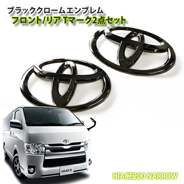 トヨタ 200系ハイエース / レジアスエース(標準ボディ)1〜8型用 ブラッククロームエンブレム Tマーク2点セット(フロントT・リアT) TOYOTA HIACE REGIUS ACE CHROME EMBLEM NARROW
