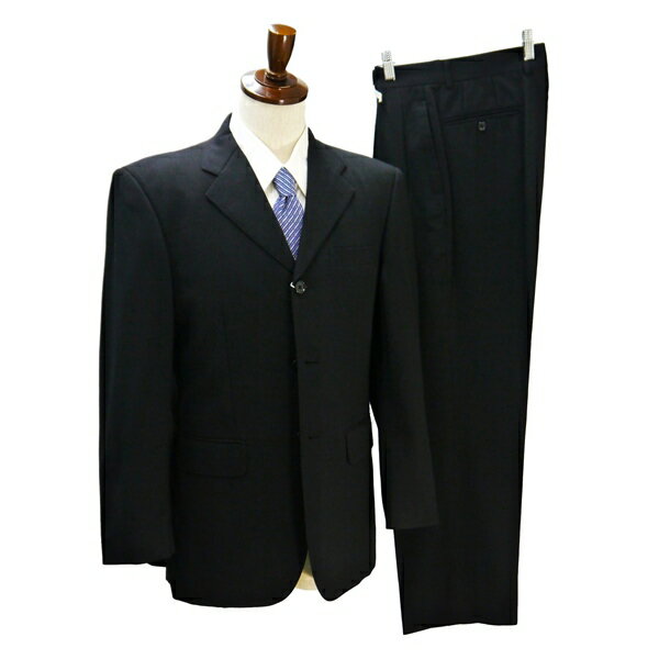 パーソンズ 3つボタン シングルスーツ AB6 L ブラック シャドーストライプ ツータック ウエストアジャスター 春秋冬 2AP104 6NA088 【送料無料】【中古】【メンズビジネス】202601
