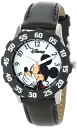 ディズニー ミッキーマウス ティーン向け 腕時計 ステンレススチール ブラックレザーバンド