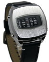 未来系LED腕時計 メンズウォッチレディースデジタルウォッチメーターボルテックス 時計の概念をリセットしたブラック シルバーケースブラックレザーバンドベルト ユニセックスグレーダイヤル 電気メーター回転ドラムディスクで時間を表示