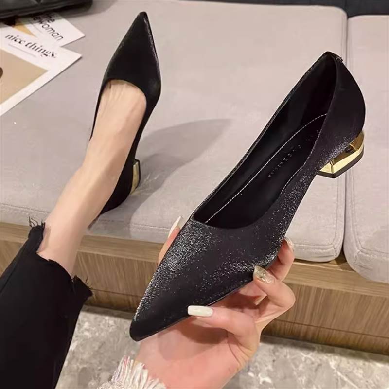 パンプス 靴 シューズ ローヒール ポインテッドトゥ チャンキーヒール レディース かわいい 大人可愛い きれいめ こなれ感 シンプル カジュアル 主役級 存在感 個性的 韓国 オルチャン デート お出かけ パンプス 2cmヒール 痛くない 歩きやすい 履きやすい 安定性