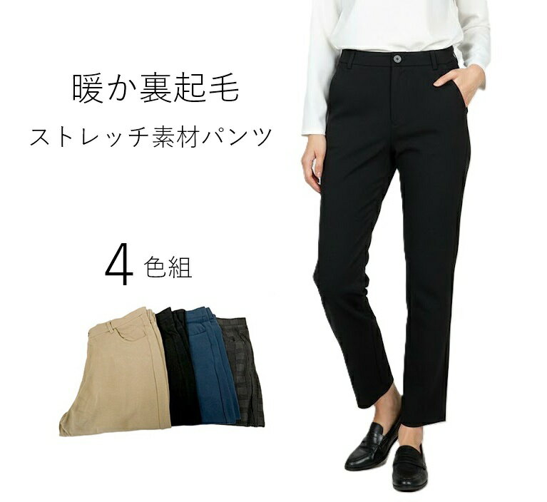 1枚744円!お買い得4色セット 暖か裏起毛 ストレッチ素材パンツ 股下70cm 大きいサイズ (4L)4色組ブラック・ターコイズ・グレーチェック・ベージュ【秋冬】