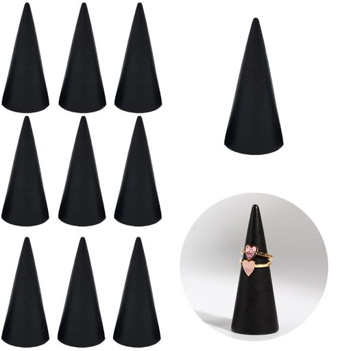 天然木リングスタンド指輪スタンド(ブラック10個)コーン指輪置きケース指輪の保管収納アイテムリング表示木造木製ホルダー