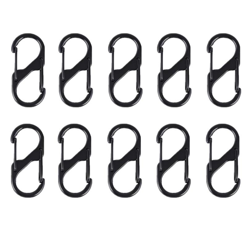 登山バックルS型登山バックル小型登山バックルアウトドア装備登山キャンプ装備置き忘れオートロック超軽量コンパクト型両頭亜鉛合金フック(ブラック10個セット)