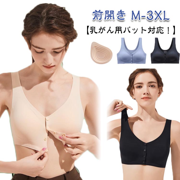 全摘ブラパッドブラジャー全摘前開き乳がん全摘用乳がん乳がん全摘ブラ乳がん術後ブラジャー乳がんブラジャー前開きパッドフロントスナップ乳がん用ブラジャーノンワイヤーブラジャー術後乳がん
