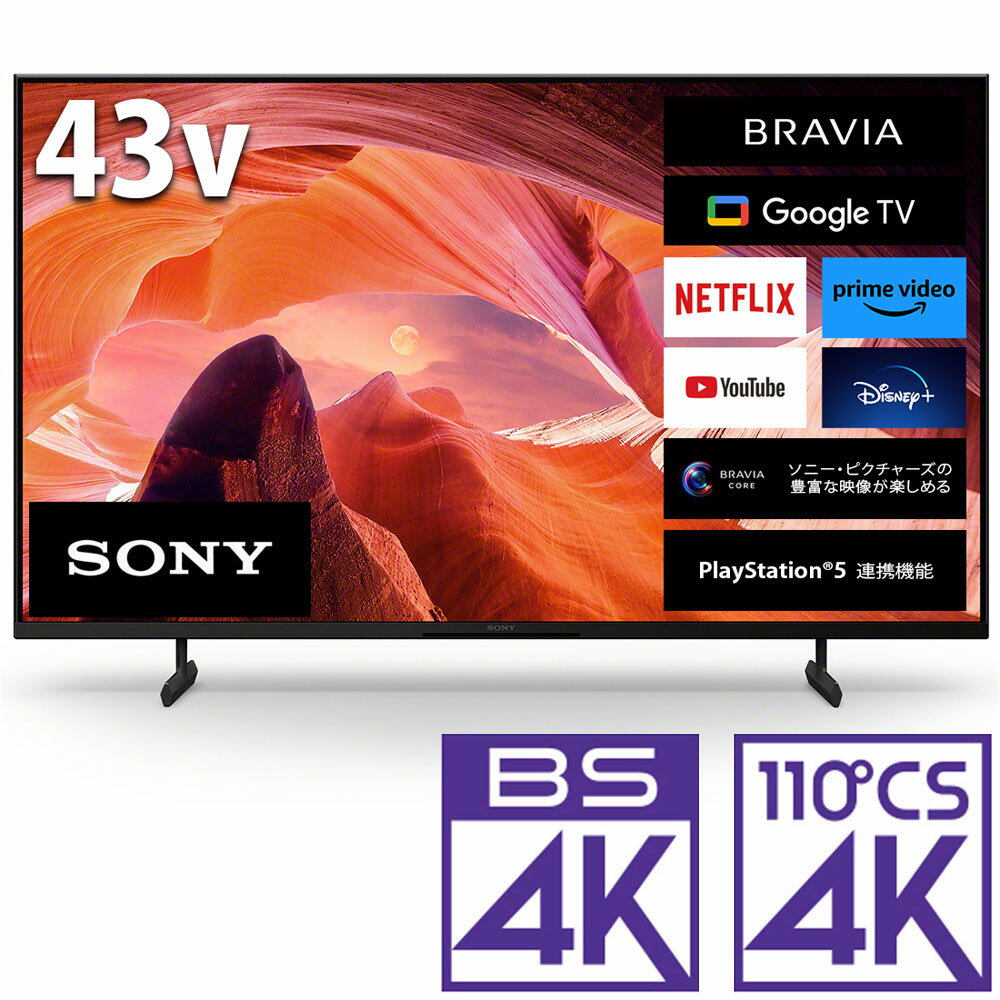 (標準設置料込_Aエリアのみ)ソニー 43型地上・BS・110度CSデジタル4Kチューナー内蔵 LED液晶テレビ KJ-43X80L (別売USB HDD録画対応)Google TV 機能搭載BRAVIA X80Lシリーズ テレビ 43型