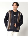 【SALE/50%OFF】Bling Leads Bling Leads/(U)モヘアタッチパネル柄Vネックカーディガン レアリゼ トップス カーディガン ネイビー【送料無料】