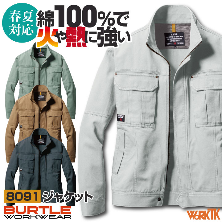 バートル 長袖 ブルゾン ジャケット 春夏 メンズ 綿100% ストレッチ 動きやすい 防縮 吸汗 作業服 作業着 鉄工 溶接 工場 庭師 運送業 BURTLE bt-8091