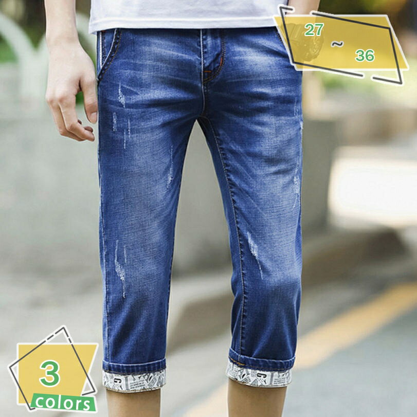 デニムパンツ メンズ デニム ストレッチ ジーンズ 7分丈 スキニー ボトムス クロップド丈 半端丈 スリム タイト 伸縮性 細身 ジーパン Gパン ブルー グレー カジュアル ストリート 学生 RaogtCYU