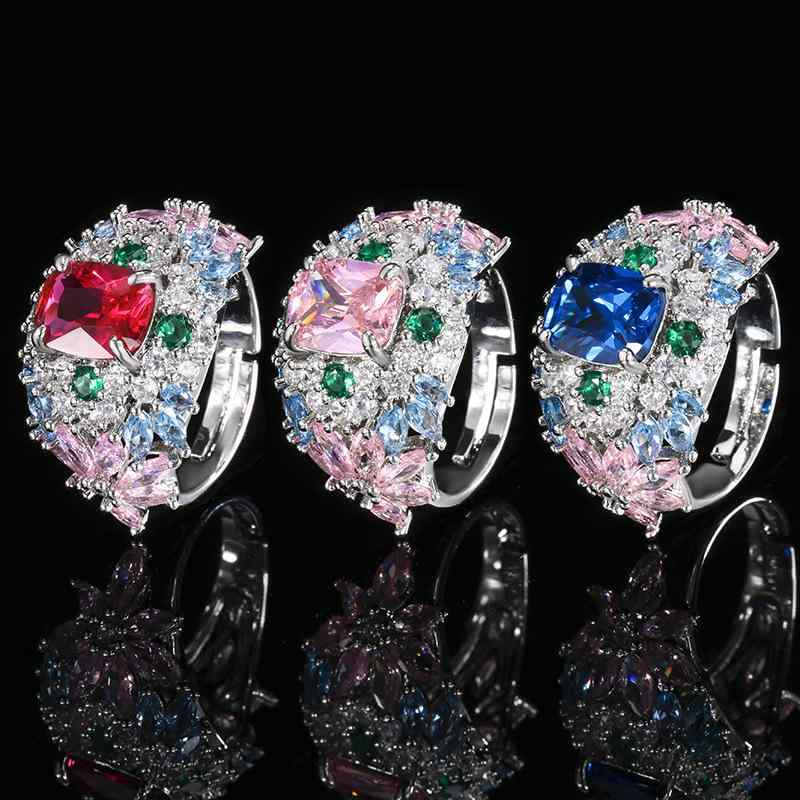 指輪 レディース 銅製 ジルコニア カラーストーン フラワー ローズ 幾何学 レッド ブルー ピンク 普段使い オフィス 通勤 おしゃれ エレガント 高級感