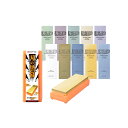 シャプトン 刃の黒幕 シャプトン『刃の黒幕シリーズ/全10種』は、刃物の種類と材質により砥石を細分化。 従来品に比べ数種の複合剤を配合し、多様な刃物・目的にそれぞれに合った 研削力・研ぎ感・仕上がりを追及したシャプトン最上位のセラミック砥石です。 ≪シャプトン最上位・刃の黒幕シリーズの特徴≫ ・すぐ研げる・・・砥粒と結合材の割合が高く気孔が少ないため、長時間水に浸しておく必要がありません。 ・高い研磨力・・・硬い砥粒の占める割合が高いため、ノリが良く刃付が早い。 ・天然砥石の研ぎ感・・・新しい複合剤を加える事により、天然砥石の研ぎ感を実現。 ・長持ち・・・従来品と比べると圧倒的に砥石のへりが少ないため、より長い期間ご使用いただけます。 ・臭わない・・・砥石が無臭のため刃物に臭いが付きません。調理場等で研いだ後すぐにご使用になれます。 ・変形しにくい・・・砥石が大変硬く研ぎ面がすぐに変形しないため、頻繁な砥面修正の必要がありません。 ・研ぎ台・・・梱包のプラスチックケースが研ぎ台として利用でき、使用後は中に入れて衛生的に保管もできます。 ・すぺらない・・・研ぎ台になるケース裏にはウレタンゴムが4箇所に付いているので、研いだ時も動きません。 砥石サイズ:210×70×15mm 【商品】 ●ホワイト 商品番号: K0701 用途:荒砥(120) 欠け刃や角度の急ぎの修正に強力な研削力がある荒砥石 [用 途] ・鑿(ノミ)、 鉈(ナタ)、斧(オノ) ・刈込鋏、芝刈鋏、畳包丁出刃、鮭切、マグロ切包丁、洋包丁冷凍切、ガラスキ、チャッパー ●モス 商品番号: K0706 用途: 荒砥(220) ステンレスの欠刃や、溶解ハイス鋼の荒研ぎに、くいつきが抜群な荒砥石 [用 途] ・溶解ハイス鋼(鑿/ノミ・鉋/カンナ)、チョウナ ・柳刃(正夫)、タコ引、鰻サキ(江戸型)、そば切、うどん切、寿司切 ステンレス和包丁、牛刀、筋引、骨スキ、カステラ切、本焼和包丁(出刃)中華包丁、一般家庭用包丁 ●ブルーブラック 商品番号:K0709 用途:荒砥(320) 小さな刃欠けの修正には研削力があり、研ぎ感の抜群な荒砥石 [用 途] ・鉋(カンナ)、槍鉋 ・皮革ナイフ、切出ナイフ、植木鋏、生花鋏小出刃、アジ切、薄切、ムキモノ包丁、ふぐ引、はも切、はも裂、菜切ステン中華、割込包丁、氷細工エノミ、本焼和包丁(柳刃、タコ引、薄刃)、鰻サキ(大阪型、名古屋型、京型)、レジャーナイフ、ポケットナイフ、日本刀、スウェーデン鋼、ステンレス鋼、モリブデン鋼 ●オレンジ 商品番号:K0702 用途 中砥(1000) 中砥でも荒砥がいらない位良く刃が付き、荒・中研ぎ兼用砥石として便利な中砥石 [用 途] ・鑿(ノミ)、チョウナ、彫刻刀 ・洋鋏、刈込鋏、芝刈鋏、理髪用鋏、裁鋏、畳包丁、出刃、鮭切、マグロ切包丁、そば切、うどん切、寿司切、鰻サキ(江戸型)、氷細工エノミ、本焼和包丁(出刃)、洋包丁、冷凍切、カステラ切、ガラスキ、チャッパー、レジャーナイフ、ポケットナイフ、日本刀、溶解ハイス鋼 ●ブルー 商品番号:K0707 用途:中砥(1500) 少し切れ味が落ちた時に便利な中砥石 [用 途] ・出刃ナイフ、植木鋏、生花鋏、小出刃、アジ切、柳刃(正夫)、タコ引、薄切、ムキモノ包丁、ふぐ引、はも切、菜切、割込包丁、一般家庭用包丁、本焼和包丁(柳刃、タコ引、薄刃)、ステンレス中華包丁 ●グリーン 商品番号:K0703 用途:中砥(2000) 普通の研ぎでは中研ぎも仕上研ぎも兼ねられる、手間いらずの中砥石 [用 途] ・鉋(カンナ)、槍鉋、彫刻刀 ・皮革ナイフ、洋鋏、刈込鋏、芝刈鋏、理髪用鋏、裁鋏、カミソリ、畳包丁、マグロ包丁、はも裂、中華包丁、鰻サキ(大阪型、名古屋型、京型)、ステンレス和包丁、ぺティナイフ、ガラスキ、チャッパー、スウェーデン鋼、ステンレス鋼、モリブデン鋼 ●エンジ 商品番号:K0704 用途:仕上砥(5000) 従来の仕上げ砥石にありがちなツルツル感がなく、くいつきが良い研磨力優れた仕上砥石 [用 途] ・鑿(ノミ)、チョウナ、鉈(ナタ)、斧(オノ) ・植木鋏、生花鋏、裁鋏、出刃、鮭切、小出刃、アジ切、薄刃、ムキモノ包丁、菜切、割込包丁、そば切、うどん切、寿司切、氷細工エノミ、本焼和包丁(出刃)、洋出刃、冷凍切、一般家庭用包丁 ●メロン 商品番号:K0710 用途:仕上砥(8000) 天然砥石の滑らかな研ぎ感と仕上げを実現した仕上砥石 [用 途] ・鉋(カンナ)、槍鉋、彫刻刀 ・出刃ナイフ、柳刃(正夫)、タコ引、ふぐ引、はも引、鰻サキ(江戸型)、本焼和包丁(柳刃、タコ引、薄刃)、理髪用鋏、カミソリ、日本刀 ●クリーム 商品番号:K0705 用途:仕上砥(12000) この種の砥石には見られない研磨力が有り、刃物の長切れと光沢を実現する超仕上砥石 [用 途] ・溶解ハイス鋼(鑿/ノミ・鉋/カンナ) ・皮革ナイフ、洋鋏、鰻サキ(大阪型、名古屋型、京型)、はも裂、ステンレス和包丁、牛刀、筋引、骨スキ、べティナイフ、カステラ切、中華包丁、ステン中華包丁、レジャーナイフ、ポケットナイフ、スウェーデン鋼、溶解ハイス鋼、ステンレス鋼、モリブデン鋼 ●ムラサキ 商品番号:K0711 用途:鏡