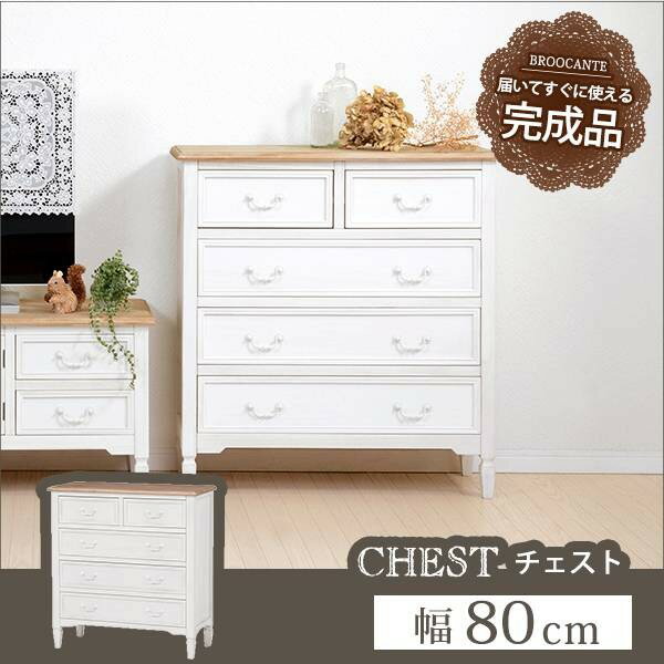 チェスト アンティーク 4段 5段 ブロカントシリーズ 幅80cm ホワイト 衣類収納 たんす ホワイトチェスト リビング収納 収納ラック 収納家具[MCH-7321WH]