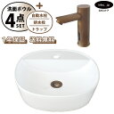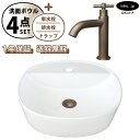 洗面ボウル 置き型 おしゃれ 手洗い器 丸+単水栓+排水栓+トラップ セット 大きい 小さい 大きめ 小さめ 洗面台 陶器 オーバーフロー無し クロスハンドル 古銅 ブロンズ シンプル 店舗 造作 diy リフォーム サイズ 幅 40cm 400mm 奥行き 40cm 400mm INK-0401044H-0302071Hset