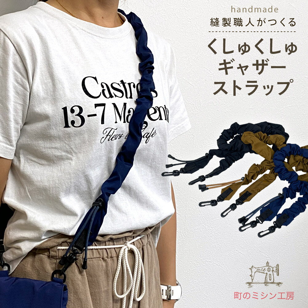 くしゅくしゅ ストラップ ギャザー マルチ ストラップ スマホショルダー ストラップ レディース メンズ 長さ調整 スマホストラップ ショルダーストラップ 紐 バッグストラップ おしゃれ かわいい 大人可愛い ブラック ネイビー ブロンズ ギフト