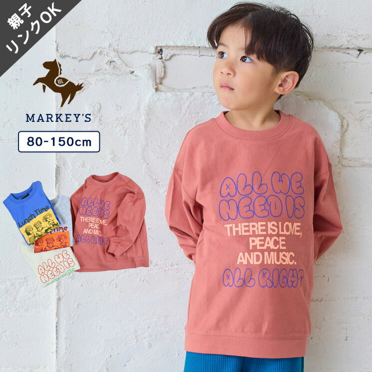 遊び心のあるグラフィックが主役のカジュアルロンT♪■デザインフロントに目を引くロゴ&イラストプリントをのせたクルーネックロンTです。カラーごとにプリントデザインが異なり、コーデのアクセントになる1枚。ほどよくゆとりのあるシルエットで、1枚でもレイヤードでも着やすいバランスに仕上げました。■スタイリングデニムやチノ、カーゴなど定番ボトムと相性抜群。シンプルなパンツに合わせるだけでスタイリングが決まります。シャツやロンTの裾を少しのぞかせたり、アウターのインナーにしてプリントを見せる着こなしもおすすめです。おとなサイズもご用意していますので、親子でリンクコーデもお楽しみいただけます!■関連商品Kids/0000361107Otona/0000361108■生地感やわらかな肌触りの綿100%素材です。ほどよい厚みでロングシーズン着回しやすく、デイリー使いにぴったり。リブ部分もしっかりしており、動きやすさと着心地の良さを両立しています。++++++++++++++++++++++++透け感:少しあり伸縮:あり厚み:普通++++++++++++++++++++++++※80〜95cm のみ肩ボタン付き※ネームタグ付き※モデルが着用している画像は、照明や日光などの撮影時の環境により実物と異なる色味になる場合がございます。商品単体の平置き画像を実物に近いお色味になるよう努めておりますので、お色味のご確認は平置き画像をご参照くださいませ。※お使いのモニター環境によっても実物のお色味と異なって見える場合がございます。予めご理解の程よろしくお願いいたします。ハートマークをポチッ!気になる商品はお気に入り登録をお忘れなく!商品のお気に入り登録をすると...[再入荷][残り1点][セール情報]を受け取れます。MARKEY'Sをお気に入り登録すると...[新商品][再入荷]の情報をいち早く受け取れます。[型番:0000361107]■カラー:4色展開80:身幅38 総丈34 肩幅36 袖丈2190:身幅39 総丈36 肩幅36.5 袖丈23.595:身幅40 総丈38 肩幅37 袖丈26.5100:身幅41 総丈40 肩幅38 袖丈29.5110:身幅42 総丈43 肩幅39 袖丈32.5120:身幅44.5 総丈47 肩幅41 袖丈35.5130:身幅47 総丈51 肩幅43 袖丈38.5140:身幅50 総丈55 肩幅45.5 袖丈41.5150:身幅53 総丈59 肩幅48 袖丈45※( )で表記されている数字はヌードサイズです。ヌードサイズとは衣服を身につけない身体のサイズです。お客様ご自身の身体サイズと比較してお選びください。 ■素材: [本体:綿100%][リブ部分:綿95%ポリウレタン5%] ■お手入: >>商品のお取り扱い方法 ■原産国: 中国製ナガソデリブロンティー/マーキーズ(MARKEY'S)G50テラコッタB61グレー杢B10オフホワイトC20ブルー画面上と実物では、多少色具合が異なって見える場合がございます。