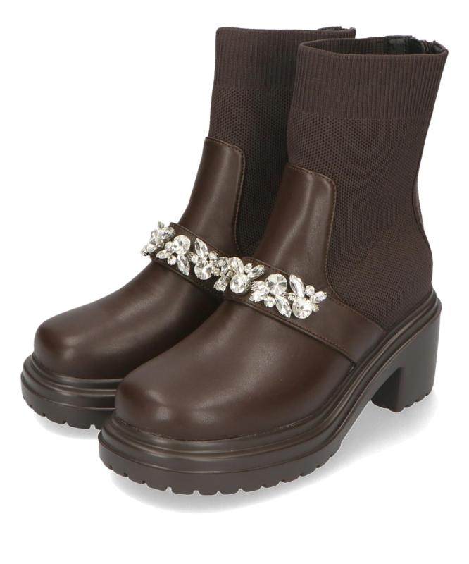 [イーボル] ファッションブーツ ビジューバックルニットショートブーツ レディースビジューバックルニットショートブーツ