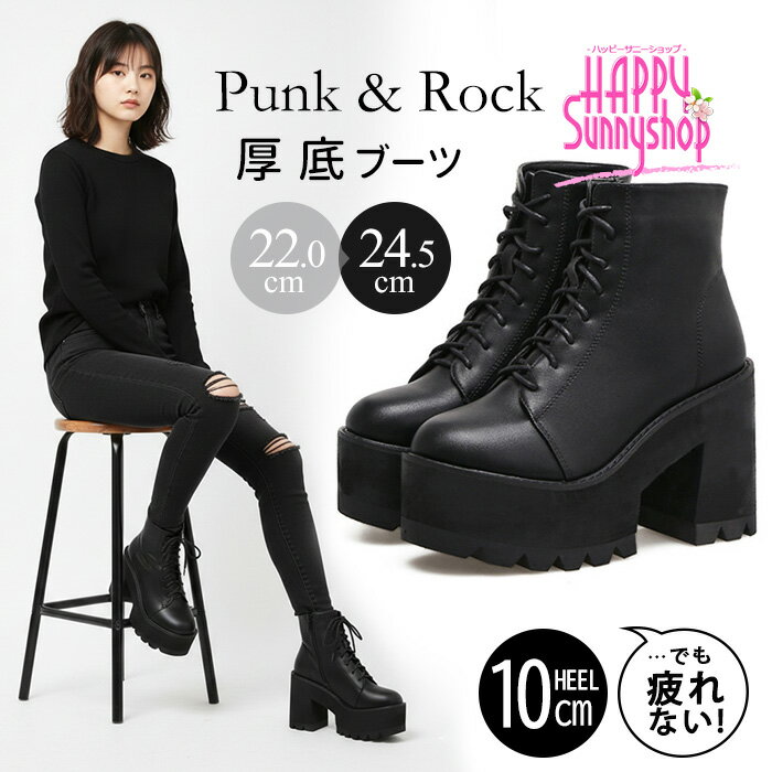 『当店No.1』 厚底 ショートブーツ レディース レースアップ 10cmヒール チャンキーヒール 太ヒール 編み上げブーツ 美脚 脚長 疲れにくい 痛くない 履きやすい 歩きやすい ストーム ブラック 黒 22.0cm〜24.5cm シンプル 通勤 通学 カジュアル 卒業式 袴 da191h2h2x1