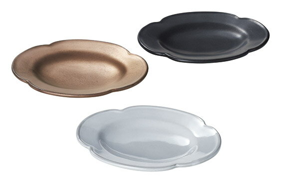 デプレ・ブラックプチオーバルプレート 01801-080【花型 和食器 和モダン おしゃれ ブラック 黒】