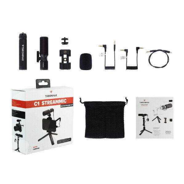 [M-GAMING Thronmax C1 STREAMMIC MICROPHONE KIT ブラック MG-C1 [MGC1]] の商品説明●コンパクトで軽量、非常に使いやすく、クリアで鮮明なスーパーカーディオイドマイクです。●STREAMMIC Proは、マイクの真正面に焦点を合わせるタイトなピックアップエリアに設計されています。●周囲の音を低減させ、被写体をバックグラウンドノイズから分離します。●Thronmaxの特徴でもあるクリアなサウンドにするVERTIGAINテクノロジーデザインを採用●複雑なスイッチや設定は無く、カメラの外部マイク入力から電源供給されるため動作にバッテリーは必要ありません。[M-GAMING Thronmax C1 STREAMMIC MICROPHONE KIT ブラック MG-C1 [MGC1]]のスペック【Thronmax STREAMMIC】●カプセル:6mm コンデンサー●指向特性:スーパーカーディオイド●周波数特性 :80Hz-16kHz●最大SPL :116dBSPL●感度 :-36dB re 1V/Pa (17.8mV @96dB SPL)●電源 :プラグインパワー方式●出力:3.5mm ミニジャック●寸法:W2.5×H3.5×D9.8cm●質量:66g●セット内容:3脚スタンド、Thronmax STREAMMIC マイクロフォン本体、マウントアダプター 2種類、スマートフォンホルダー、ウィンドシールド(スポンジ)、Androidケーブル(1) 3.5mm TRS-3.5mm TRRS (CITA仕様)、Android Type-Cケーブル(2) 3.5mm TRS-Type-C、CAMERAケーブル(3) 3.5mm TRS-3.5mm TRS-トラベルケース、Thronmaxステッカー-ユーザーガイド(英文)○初期不良のみ返品可
