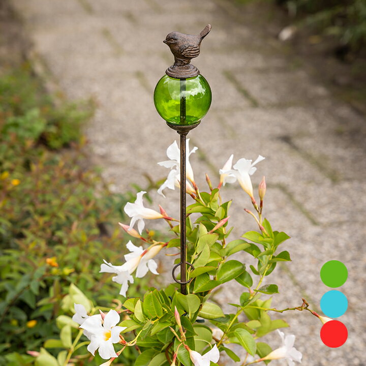 ■商品名:プランツサポート ガラス飾り付 ■商品コード:84870600 グリーン ■商品コード:84880500 ブルー ■商品コード:84890400 レッド 涼やかなガラス玉と小鳥の飾りがついたオシャレなデザインの支柱。 背の高くなる植物や倒れやすい植物を支え、美しく健全な成長をサポートします。 支柱には輪っかがついているので、誘引紐などを留めやすい仕掛けも。 【商品詳細】 サイズ:約幅8cmx奥行8cmx高さ118cm 材質:鋳鉄、スチール、ガラス型番:PY153GR PY153B PY153R