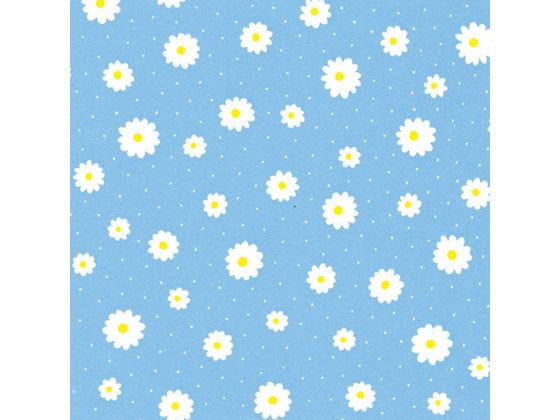 ブルー地に白のマーガレットの花が散りばめられたかわいい雰囲気の包装紙です。※三つ折りの状態でポリ袋入れの商品になります。あらかじめご了承ください。サイズ:757×530mm材質:純白ロール紙45gパッケージサイズ:300×600×20mm[ ラッピング用品 包装紙 花柄・フラワー柄 ]