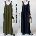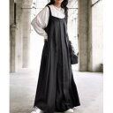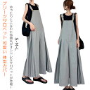 スカート レディース 大きいサイズ ゆったり 着痩せ 体型カバー プリーツ サロペット ジャンパースカート ロング丈 ノースリーブ コットン 綿 カジュアル フリーサイズ グレー ブラック 春夏