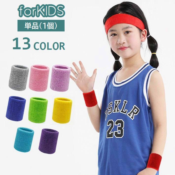 送料無料 リストバンド 単品 1個 キッズ 子供用 女の子 男の子 手首サポーター パイル生地 吸汗 通気性 無地 シンプル ソリッドカラー スポーツ テニス バスケ 女子 男子 子ども用