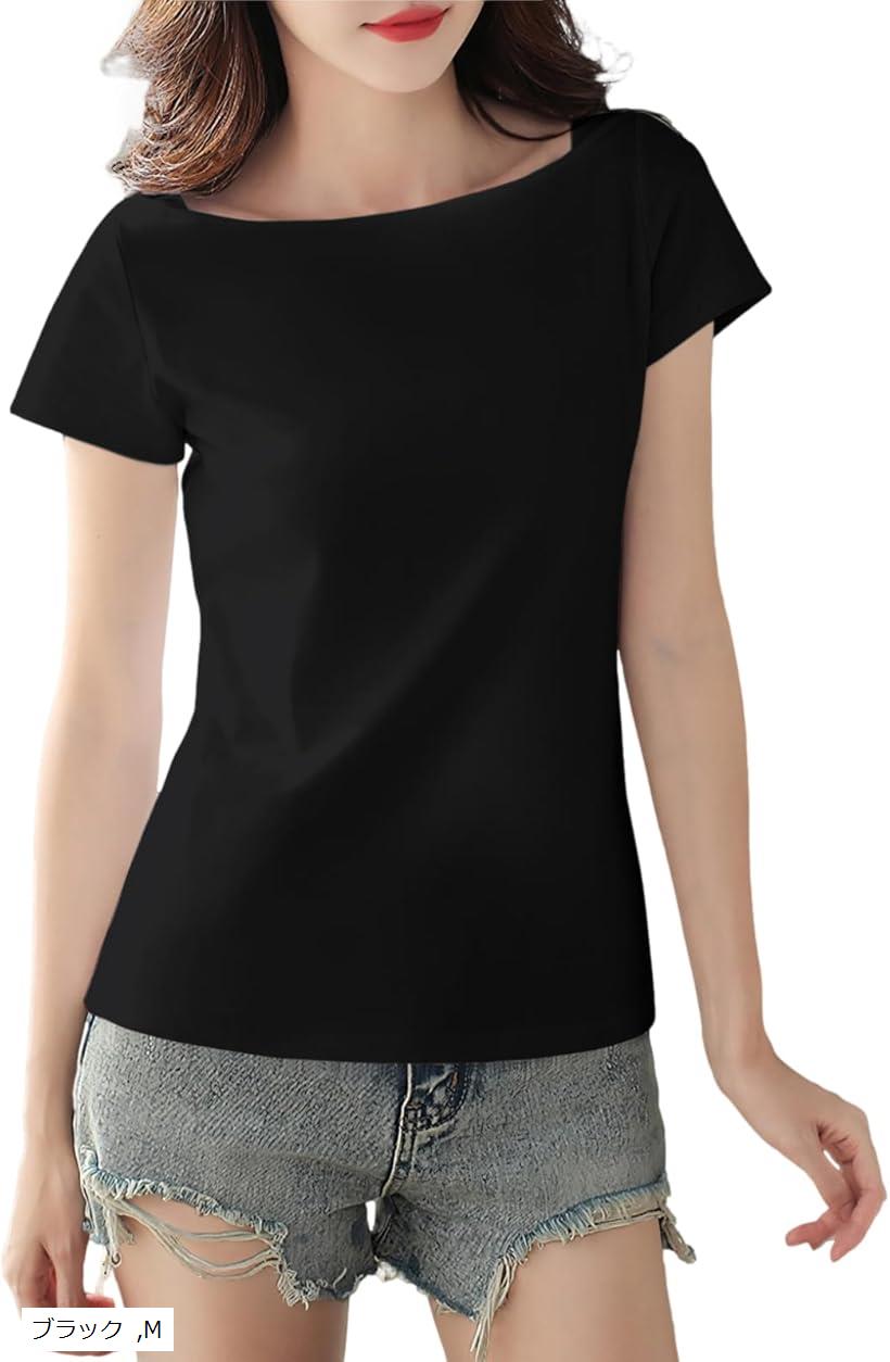 T シャツ フレンチ スリーブ ボート ネック ウエスト シェイプ 無地 レディース 女性 用 半袖 シンプル ソリッド ストレッチ 伸縮性 Tシャツ ボートネック ティーシャツ XL L ホワイト ブラック M