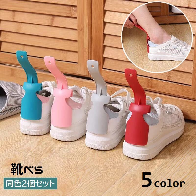 送料無料 靴べら 2個セット くつべら クリップ式 挟む 小型 コンパクト 持ち歩き便利 携帯 かかと崩れしにくい シンプル ソリッドカラー 白 赤 ピンク