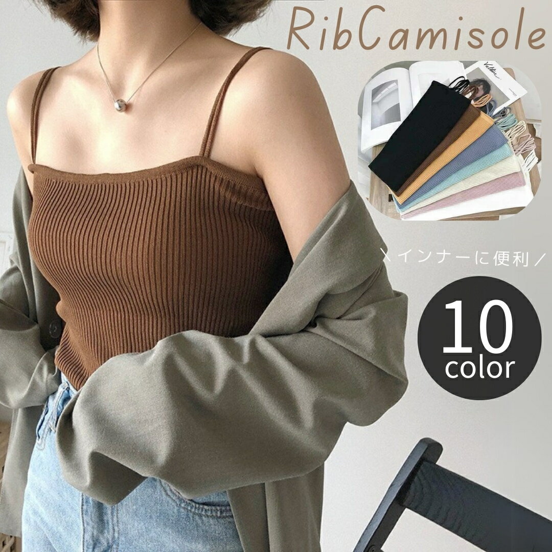送料無料 キャミソール リブニット レディース 女性 婦人 トップス リブ編み 無地 シンプル ソリッドカラー ダブルストラップ 着回し 定番 サマーニット お出かけ おしゃれ