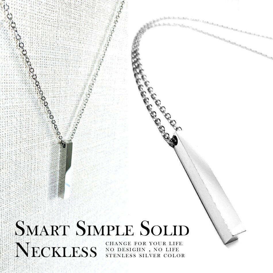 スマートシンプルソリッドネックレス 日本製 送料無料 スティック ネックレス ステンレス製 長方形 直方体 スマート シンプル メンズネックレス 棒 60センチ