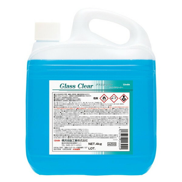 清掃用品・ガラス掃除・業務用・プロ用 横浜油脂工業 ガラス洗浄剤 リンダ グラスクリアー 4kg×2/CS