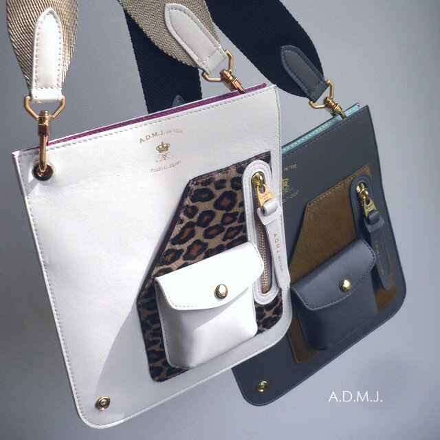 【クーポン対象外】 ADMJ エーディーエムジェイ バッグ ポシェット ショルダー ボディバッグ ラムレザー ヘアカーフ モバイルホルダー 20cm 22AW01018 ホワイト/グレー/ブラック/レオパード