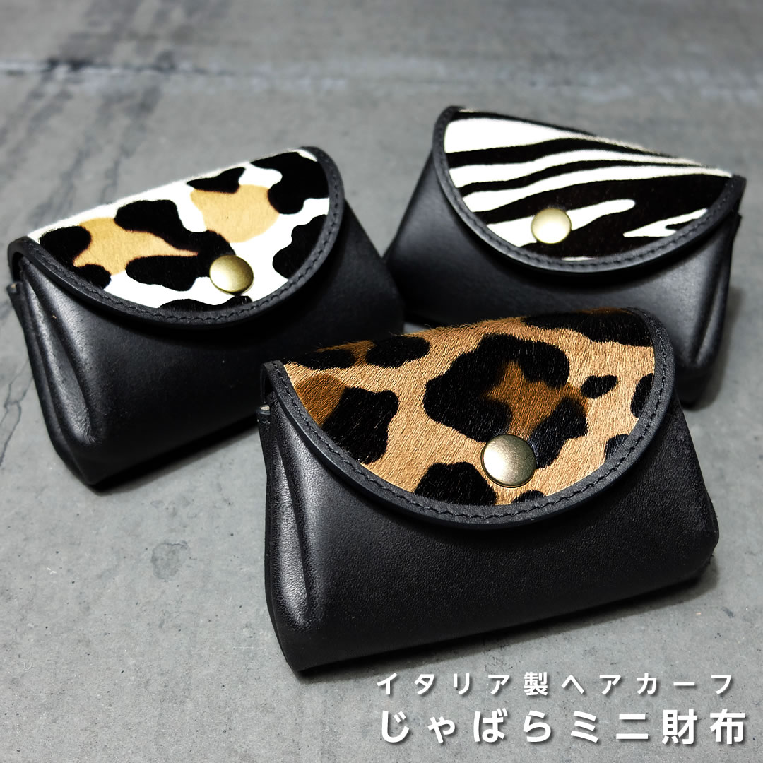 ヒョウ柄ヘアカーフ じゃばらミニ財布 クローナ イタリアンレザー ハラコ 小銭入れ カードケース コインケース 牛革 レザー レディース 小さい財布 おしゃれ かわいい 日本製